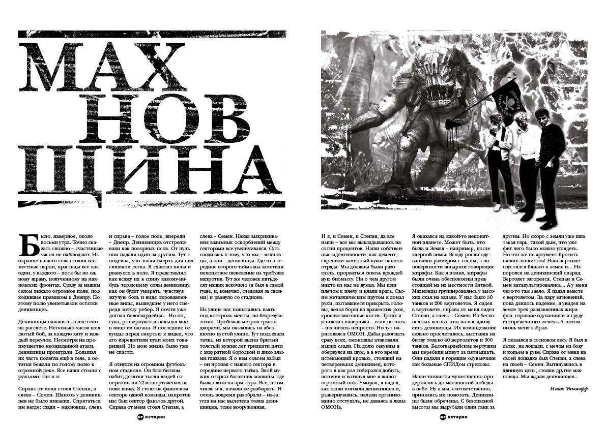 Справа от меня стоял Степан, а слева – Семен. Шансов у деникинцев не было никаких. Спрятаться им негде: сзади – махновцы, слева и справа – голое поле, впереди – Днепр. Деникинцев отстреливали как позорных псов. От пуль они падали один за другим. Тут я подумал, что такая смерть для них слишком легка. Я схватил вилы и рванулся в поле. Я представлял, как всажу их в спину какому-нибудь теряющему силы деникинцу, как он будет умирать, чувствуя жгучую боль и видя окровавленные вилы, вышедшие у него спереди между ребер. Я почти уже догнал белогвардейца… Но он, сука, развернулся и пальнул мне в лицо из нагана. В последние секунды перед смертью я видел, что его изрешетили пули моих товарищей. Но мою жизнь было уже не спасти.