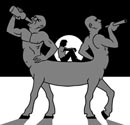Недавно мои товарищи по группе отправились в гости к спонсорам. Вернее, не к спонсорам, а к спонсорше - молодой симпатичной женщине. Она оказалась ценительницей современного искусства и по какой-то ошибке пустила к себе в дом этих сорванцов. Сам я в то время был в отъезде, так что присоединиться к ним не смог. А то бы, конечно, не допустил такого беспредела, который учинили мои коллеги. Вначале они набухались. Потом один из них скрутил здоровенный джойнт и пустил его по кругу. Сосед слева вежливо отказался. «Не могу, - сказал он. - Я политик. У нас не принято». «Кури», - глядя ему в глаза, твердо сказал мой коллега-пэгэшник. И политик спасовал. Он закурил и сразу же обкурился. А обкурившись, потерял дар речи. Молчал целый час, пока мои коллеги, как всегда, глупо шутили и дико ржали. Потом пришел в себя и сказал спонсорше: «Надо же, какая ты добрая. Таких к себе интересных людей приглашаешь...» «А ты чо не добрый?» - тут же навострил уши мой коллега-пэгэшник. «Нет, что вы, - грустно ответил политик. - Как я могу быть добрым? У нас это не принято...» «А раз не принято, - ответил пэгэшник, - то и иди отсюда. Тут только добрые собираются!» И лягнул его, видимо, в невменозе почувствовав себя хозяином дома. Политик тихо собрался и ушел. А наглецы-пэгэшники продолжали глупо шутить и дико ржать над собственными шутками.
