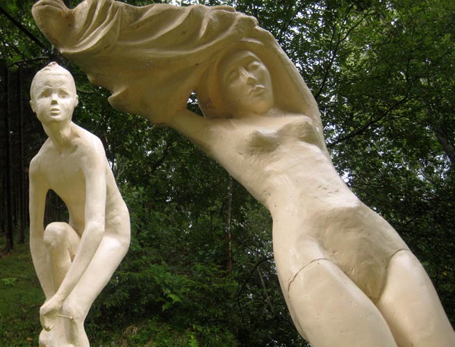 Первое, что я увидел, привело меня в восторг. Это была композиция, состоящая из трехметровой скульптуры мальчика-футболиста, снимающего трусы при виде пятиметровой раздевающейся девочки-пловчихи! Все это сработано утонченно-гротескно-грубовато, словно мастера, выполняющие заказы Кунса, делали русскую версию и слегка халтурили. /читать дальше/